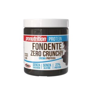 con il 28% di proteine e zero zuccheri in barattolo da 350g.-Fondente zero e zero crunchy :Maltitolo, mix proteico (proteine del siero del latte isolate, soia isolato proteico) grassi vegetali (burro di karitè, olio di girasole, burro di cacao), cacao 10/12, pasta di nocciole 2% , lecitina di girasole.